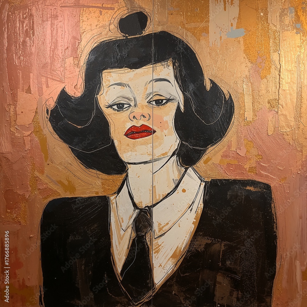 Bright and expressive abstract portrait with modern artistic design Unique composition bold colors and creative details make this illustration perfect for interior decor #1766885896