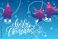 Bright Xmas web banner with funny pigeons. Handwritten lettering Merry Christmas. Funny characters doves in skates. Pigeons are skating on the ice rink. Holiday vector illustration. #468619817