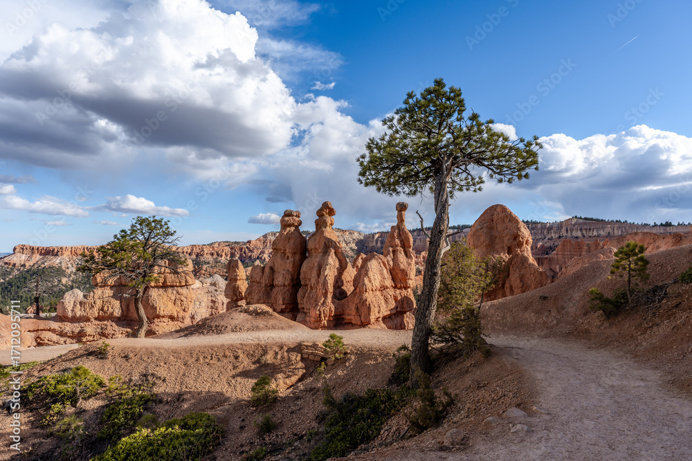Bryce canyon during sunny day with blue sky and clouds #1712095711