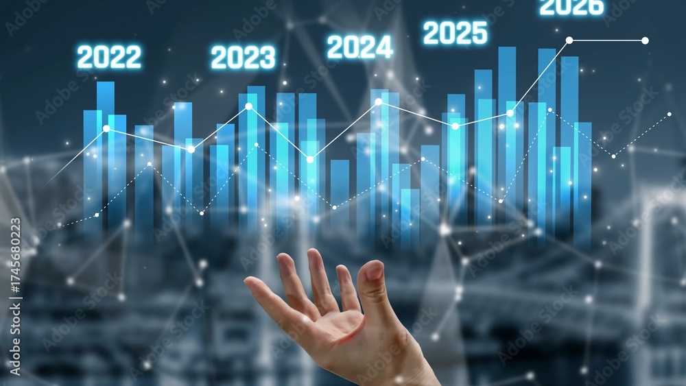 Business bar chart and line graph showing yearly business growth from 2022 to new year 2026, represent data analytics, future 2026 planning, business 2026 trend, and performance analysis 2026 Marrow #1745680223