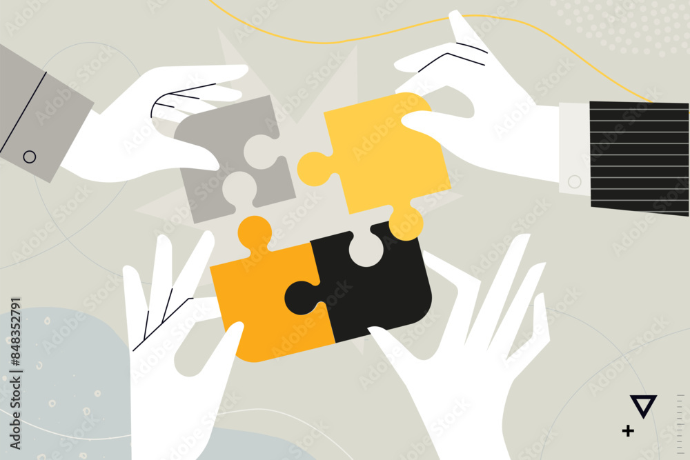Business concept. Vector illustration of teamwork, business solutions, marketing, for web banner, social media banner, business presentation, marketing material. #848352791