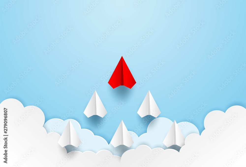 Business leadership ,financial concept. Red paper plane leadership to sky go to success goal. paper art style. creative idea. vector ,illustration. #279096807