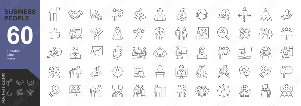 Business People Line Editable Icons set. Vector illustration in modern thin line style of business related icons: research, meeting, business communication, male and female avatars, team structure. #626254513