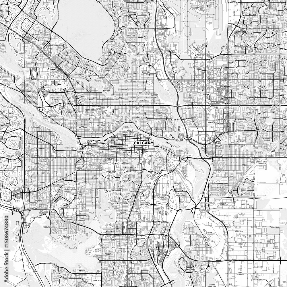 Calgary Area Map with Labels and Neighborhoods - One color, minimalistic design #1508674880