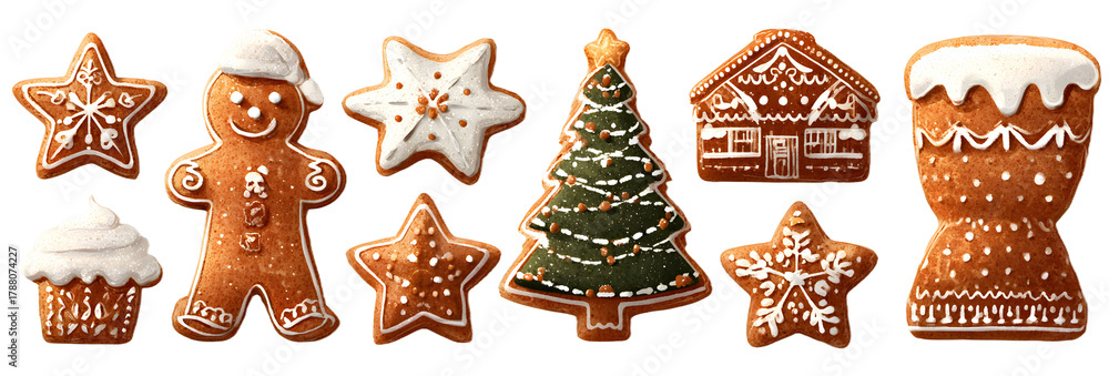 Cartoon christmas gingerbread cookies set. Xmas gingerbreads sweets star snowflake tree man, noel holiday decoration vector illustration #1788074227