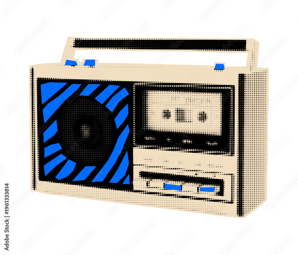 cassette recorder halftone sticker. Newspaper diy cutout . Mix media design element for collage or scrapbook. #1961333814