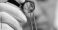 Caucasian male jeweler inspecting diamond with loupe and tweezers in workshop #1951750837
