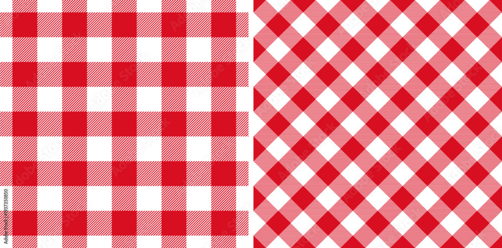 Check seamless pattern. Red checks background. Repeated gingham diagonal patern. Scottish style for prints design. Repeating texture checkered plaid. Repeat chess woven fabric. Vector illustration #1937350850