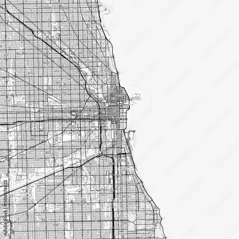 Chicago Area Map with Labels and Neighborhoods - One color, minimalistic design #1508676023