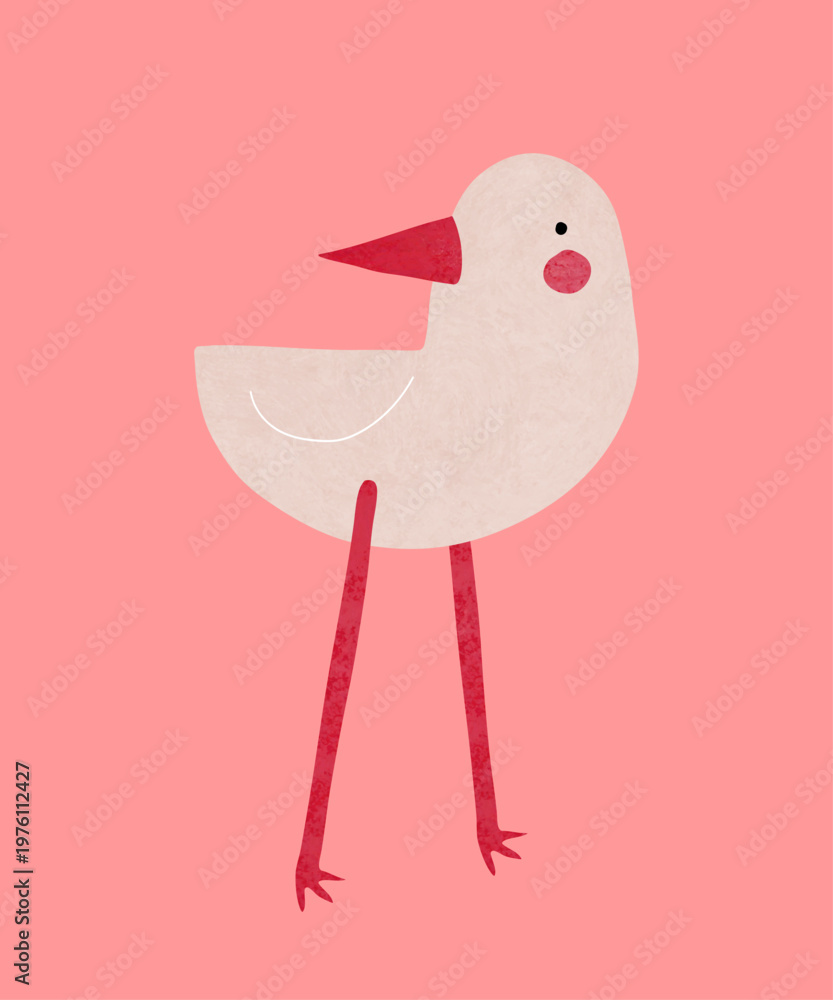 Childish Vector Illustration Of Cute Bird. Simple cartoon bird on a pink background, fully layered and editable, ideal for children’s designs, prints, stickers, and modern creative projects. #1976112427