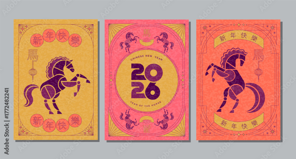 Lunar New Year, Chinese New Year 2026 ,Year of the Horse ,line art , outline , simple linear ,geometric shape #1772482241