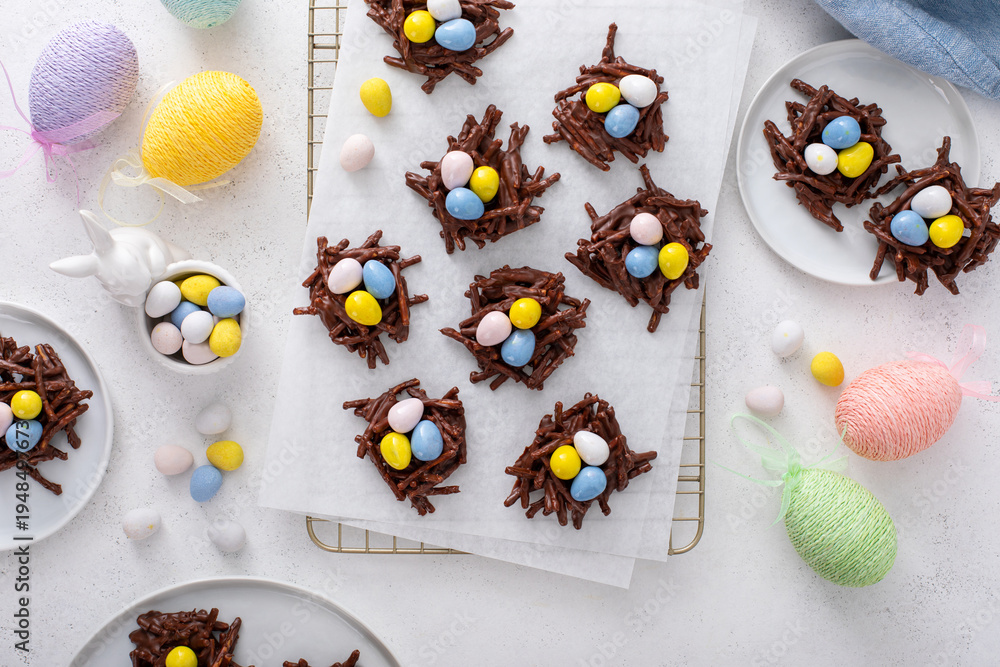 Chocolate bird nest dessert with cream chocolate eggs, dessert idea for Easter #1948497673