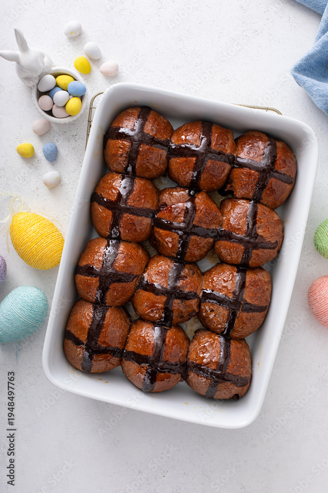 Chocolate hot cross buns for Easter, traditional pastry or dessert #1948497763