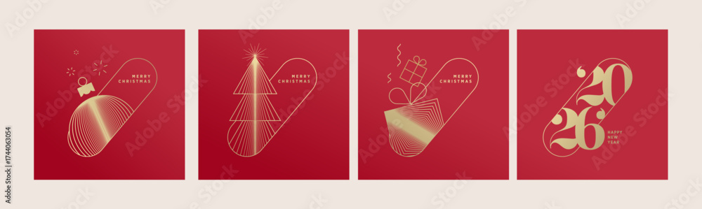 Christmas and New Year cards. Vector illustrations for holiday greeting card, background, website and social media banner, marketing material. #1744063054