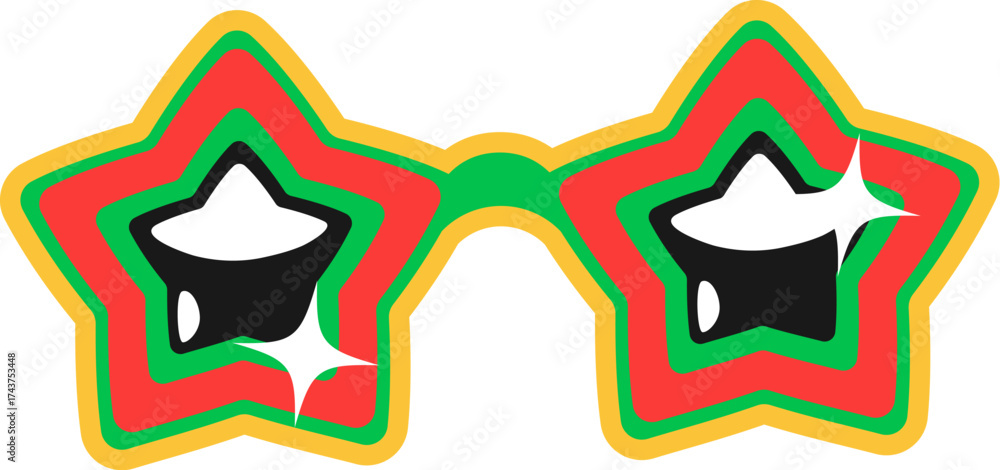 Christmas star sunglasses Y2K groovy sticker or label. Happy Christmas groovy Y2K label, Xmas celebration 60s vector sticker. New Year festive patch or vintage tag with star shaped colorful sunglasses #1743753448