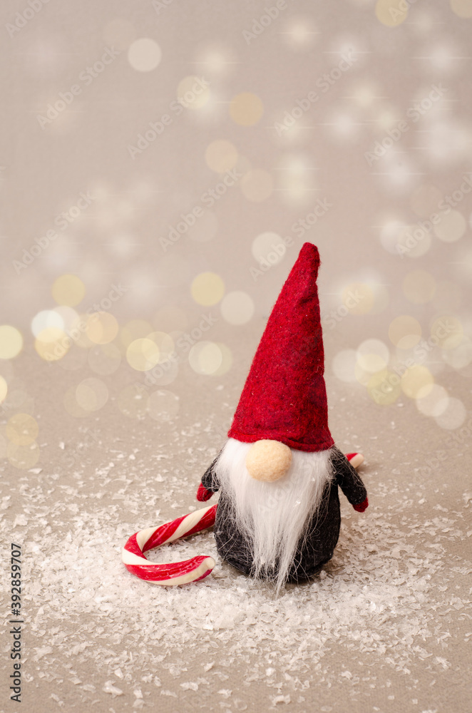 Christmas time is near - Cute little winter gnome is waiting for christmas. Christmas time concept #392859707