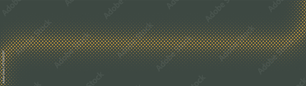 Circular halftone pattern curved border ultra wide 32:9 aspect ratio yellow green vector retro styled conceptual abstract background. Offset half tone ultrawide format retro futuristic technology #1750642097