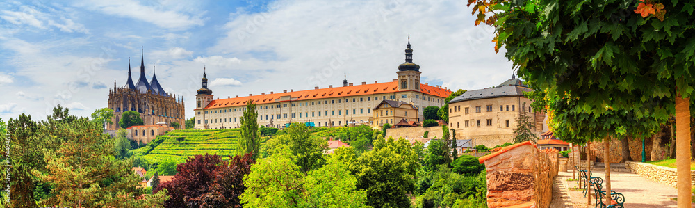 Cityscape, panorama, banner - view of the Saint Barbara's Church and the Jesuit College in the town of Kutna Hora, Czech Republic #1244946320