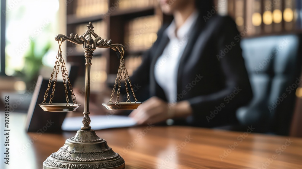 Civil rights attorney in India. discussing legal protections with client. organized office setup. #1078155262