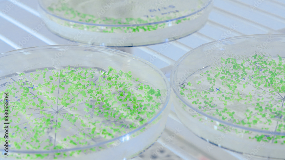 Close-up of cultures in petri dishes in bioscience laboratory refrigerator. Concept of science, laboratory and study of diseases. #330555364