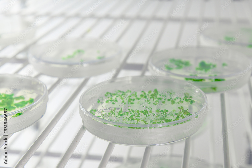 Close-up of cultures in petri dishes in bioscience laboratory refrigerator. Concept of science, laboratory and study of diseases. Coronavirus (COVID-19) treatment developing. #331946697