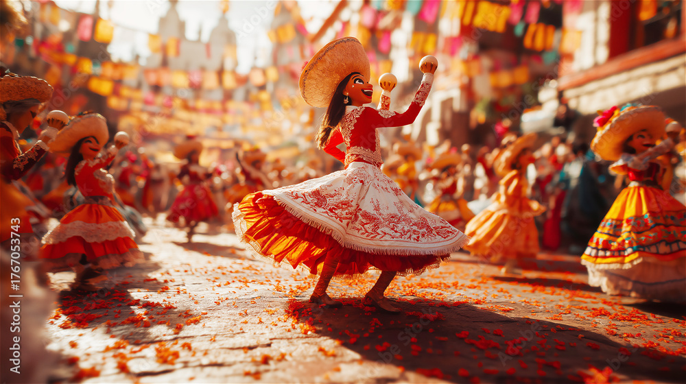 Close-up of vibrant Holi festival celebration with hands throwing colorful powders. Traditional Indian cultural event captured in dynamic motion with orange and red pigments filling the frame. #1767053743