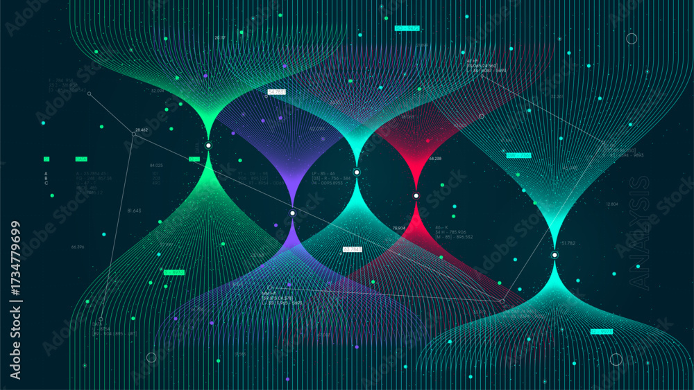 Cloud data computing and neural network, cluster database processing by computer algorithms, Big data visualization information flow sorting and analysis, Futuristic technology background #1734779699