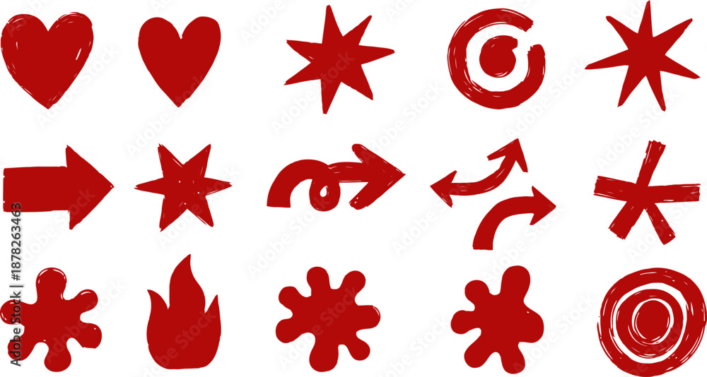 Collection Of Abstract Naive Art Icons And Symbols Hand Painted Doodle Shapes Rough Crayon Texture #1878263463
