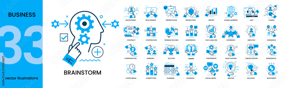 Collection of different business concept scenes and situations. Human with icons and images. Taking part in business activities, digital marketing, business concept, workflow scenes. #760614637