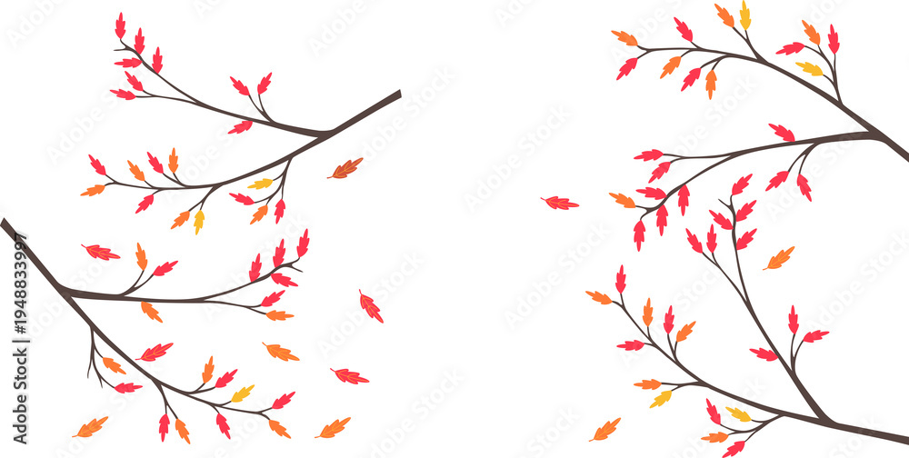 colorful autumn leaves falling from tree branches isolated on transparent background transparent background #1948833997