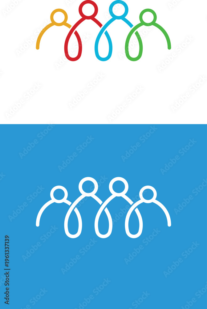 Colorful Four People Team String Connection Vector Icon White Background Symbol #1961337139