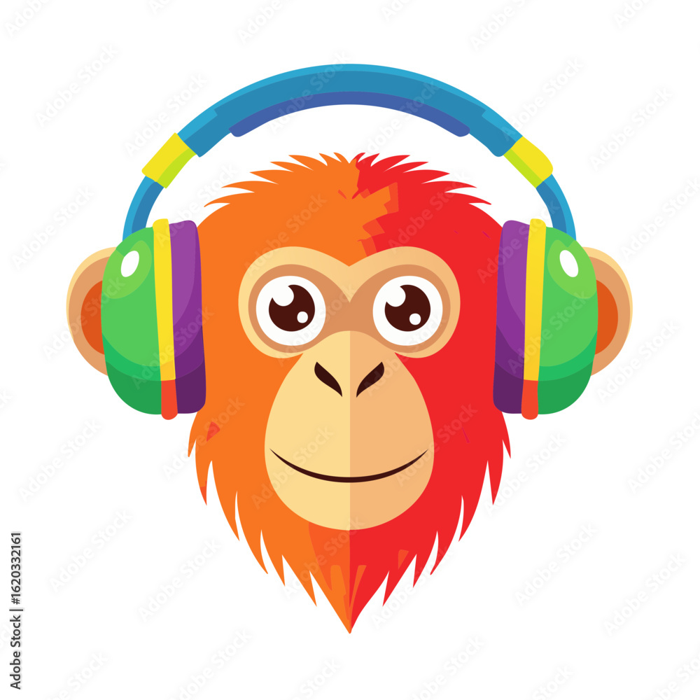 Colorful Monkey Listening to Music on a headphones Isolated on a Transparent Background #1620332161