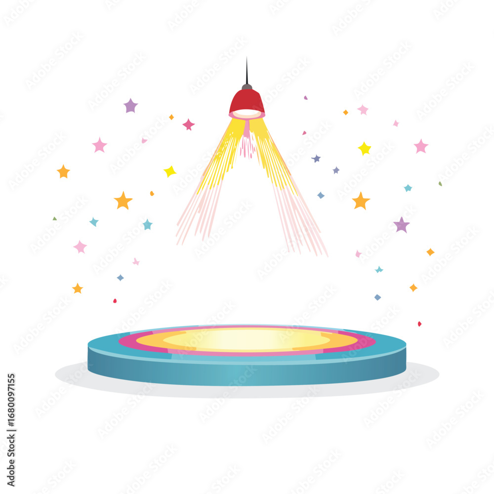 Colorful stage with spotlight and falling stars illustration celebration #1680097155