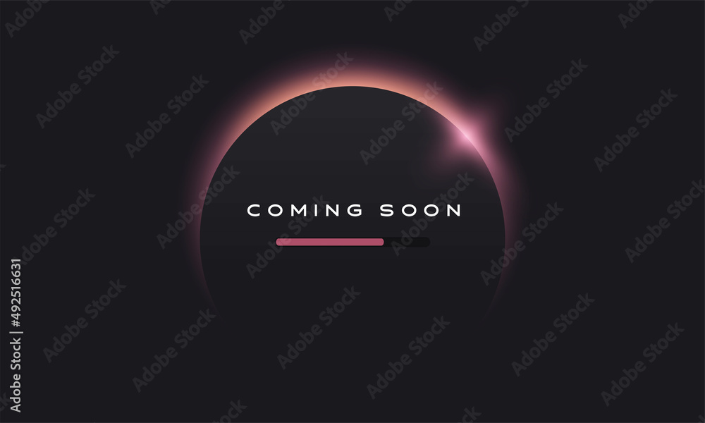 Coming soon text on abstract sunrise dark background with motion effect #492516631