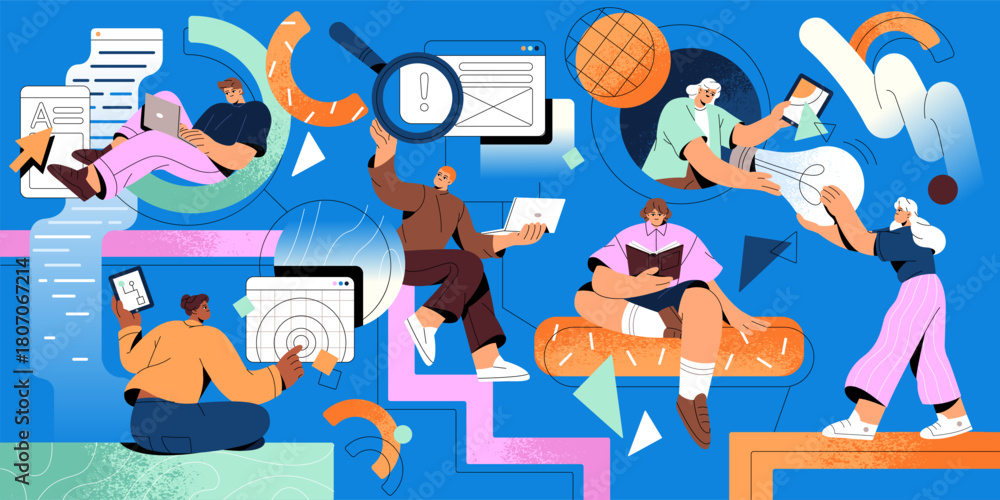 Concept of teamwork, partnership. Office workers are coworking. Group of employees works together in collaboration, cooperation. Organization of workflow in development team. Flat vector illustration. #1807067214