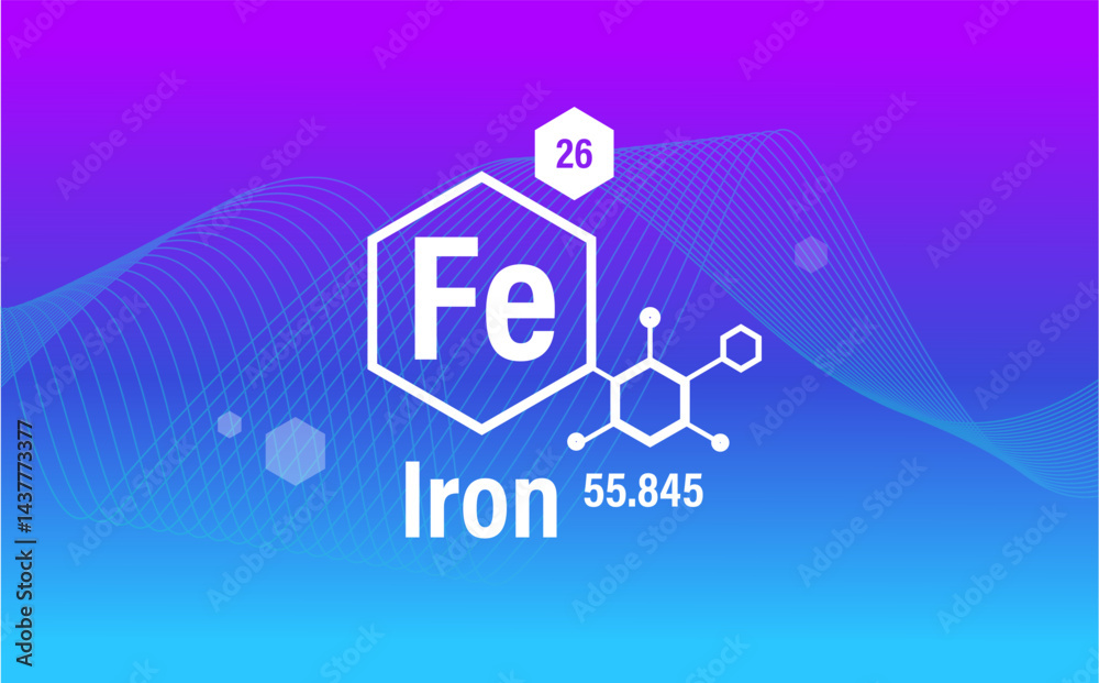 Conceptual abstract composition. Icon, sign. Iron. Set of microelements (minerals) useful for human health on a white background #1437773377