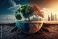 Conceptual of climate change and global warming with melting icebergs, rising sea levels, and extreme weather events. Generative AI #577384856