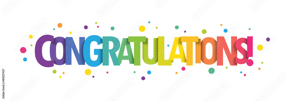 CONGRATULATIONS! bright vector typographic banner with colorful dots #484217437