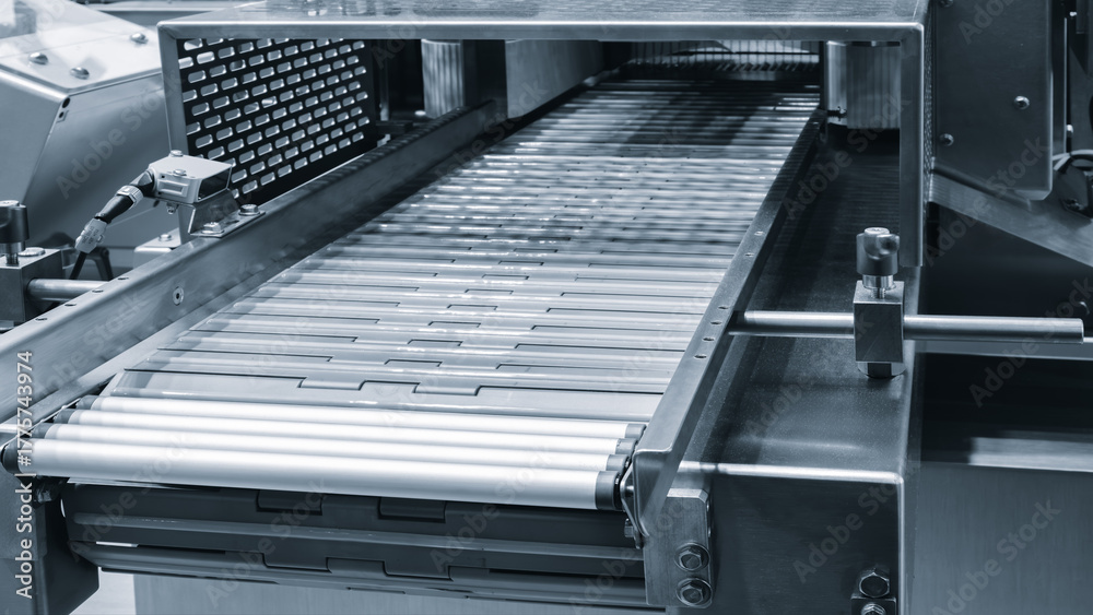 Conveyor belt for packaging with laser motion sensors. #1775743974