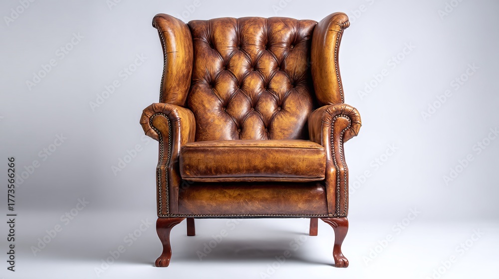 Cozy leather armchair with tufted details offers classic elegance. The perfect accent piece for a den or living room, promising comfort and timeless style. #1773566266
