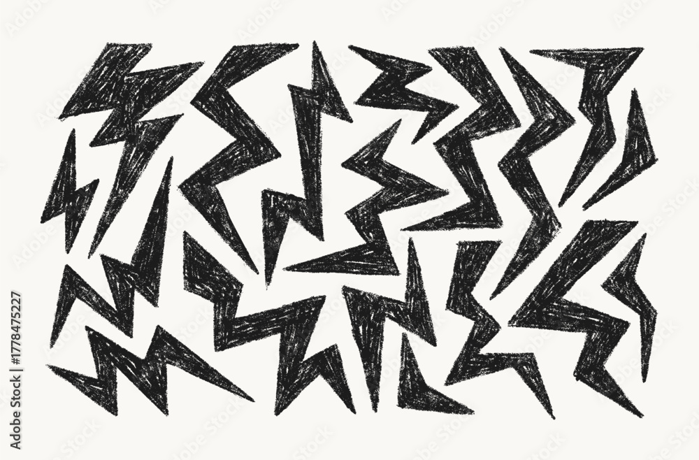 Crayon Lightning and Thunder Chalk Icons Set. Vector Hand Drawn Pencil Zig Zag Shapes Lightning Bolt in Retro Comics Style. Doodle Abstract Elements for Template, Promo and Web Design #1778475227