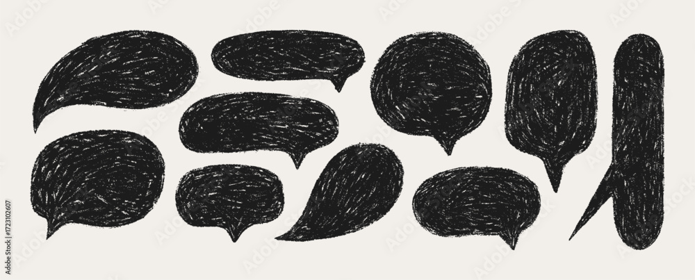 Crayon Speech Bubble Frame. Vector Chalk Ditsy Text Box in Black. Hand Drawn Charcoal Talk Balloon in Doodle Kids Style. #1723102607