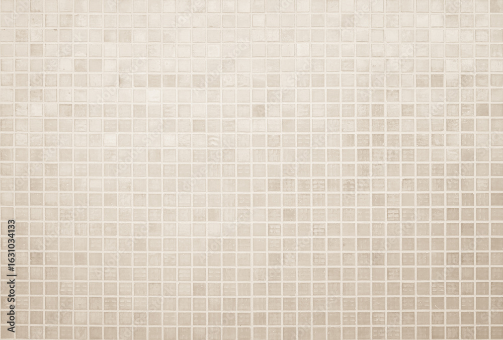Cream light ceramic wall and floor tiles mosaic background in bathroom and kitchen. Design pattern geometric with grid wallpaper texture decoration pool. Simple seamless abstract surface clean. #1631034133