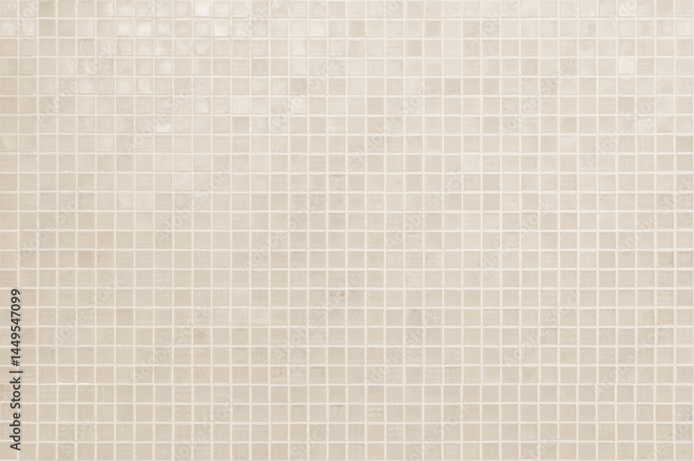 Cream light ceramic wall chequered and floor tiles mosaic background in bathroom, kitchen. Design pattern geometric with grid wallpaper texture decoration pool. Simple seamless abstract surface clean. #1449547099
