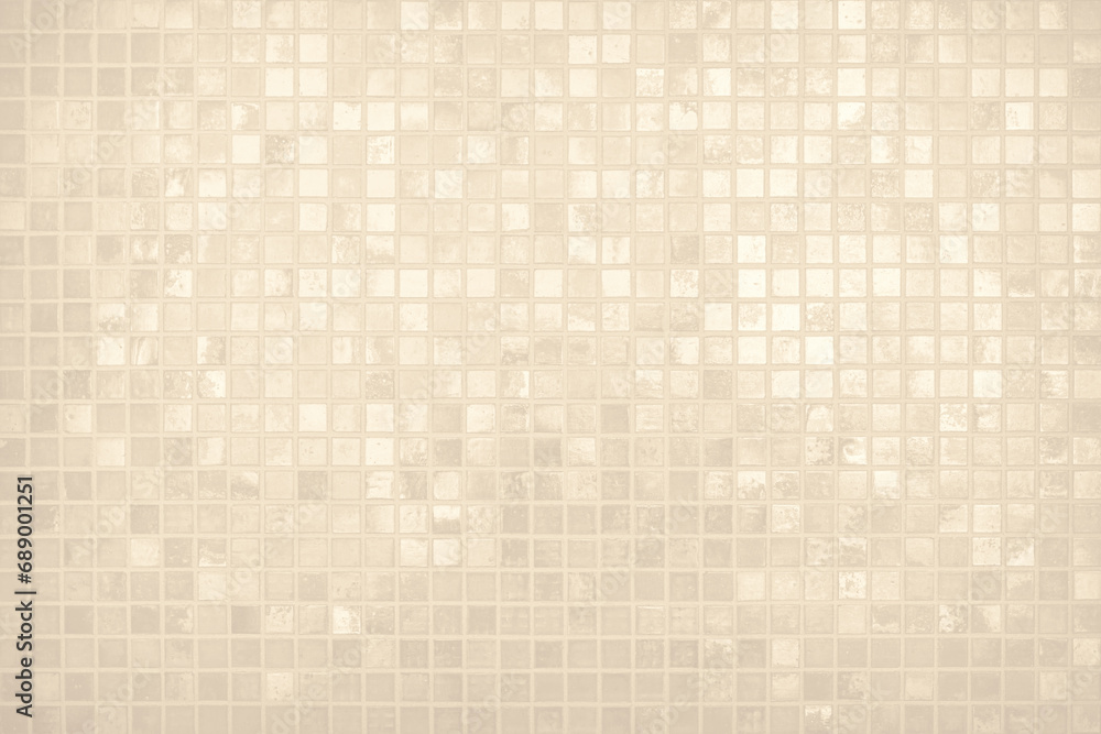 Cream light ceramic wall chequered and floor tiles mosaic background in bathroom, kitchen. Design pattern geometric with grid wallpaper texture decoration pool. Simple seamless abstract surface clean. #689001251