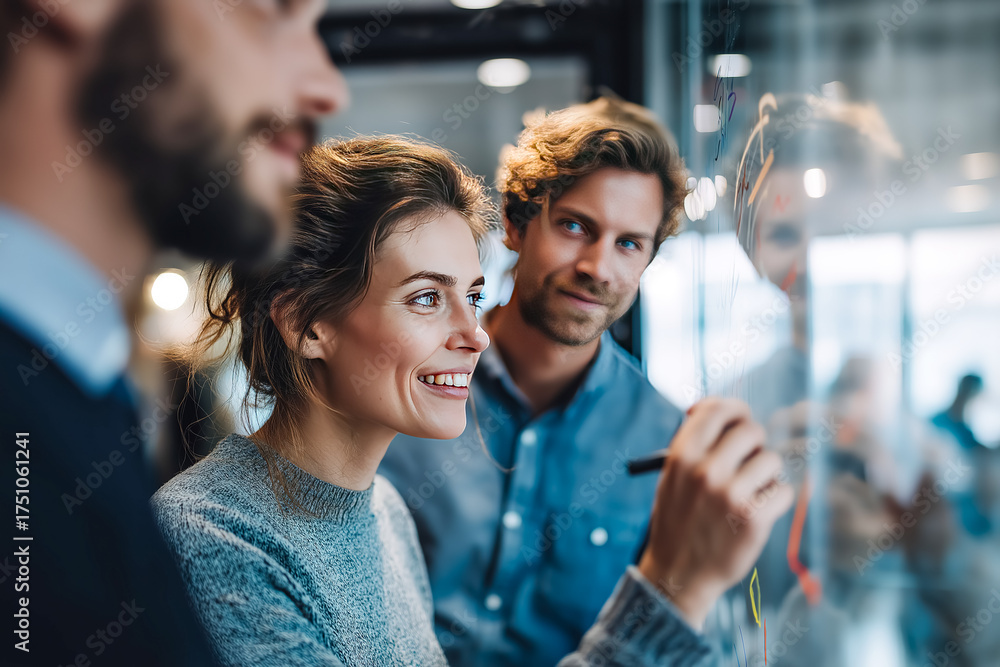 Creative brainstorming session in a modern office space with colleagues collaborating on a project #1751061241
