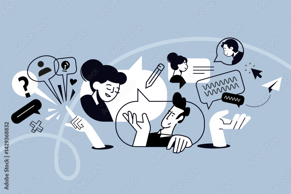 Creative illustration of exchange of creative ideas, information and opinions, communication. Vector concept for web banner, social media banner, business presentation, marketing material. #1429368832