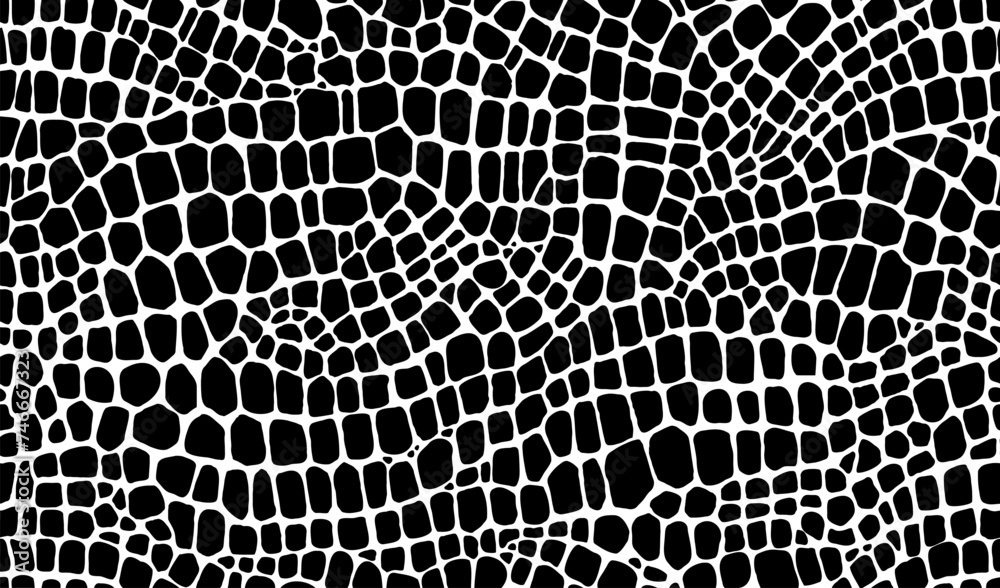Crocodile, dinosaur and snake reptile skin pattern of animal leather, vector background. Abstract black and white crocodile or snake skin texture pattern of python, alligator or snakeskin lizard print #746667323