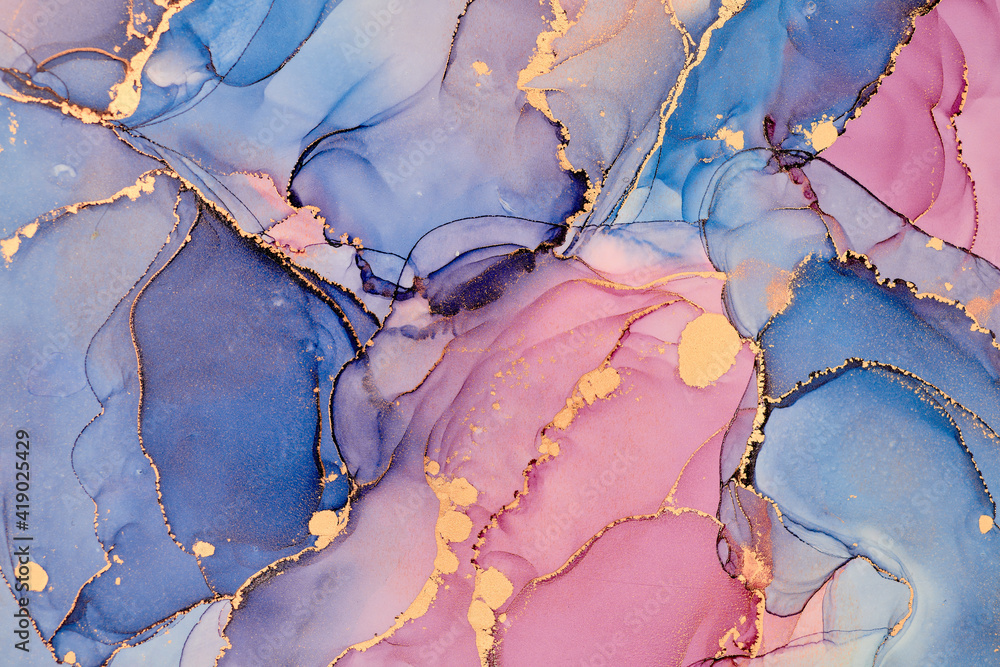 Currents of translucent hues, snaking metallic swirls, and foamy sprays of color shape the landscape of these free-flowing textures. Natural luxury abstract fluid art painting in alcohol ink technique #419025429