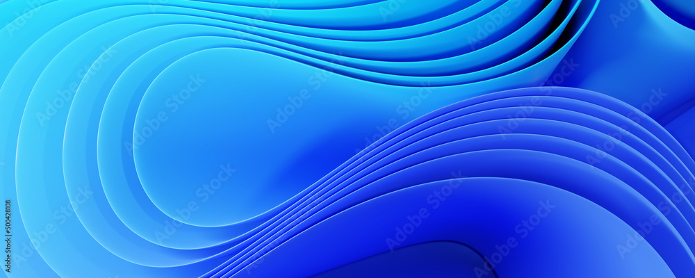 Curved sheets of paper in blue and turquoise. 3D Illustration. #500428108